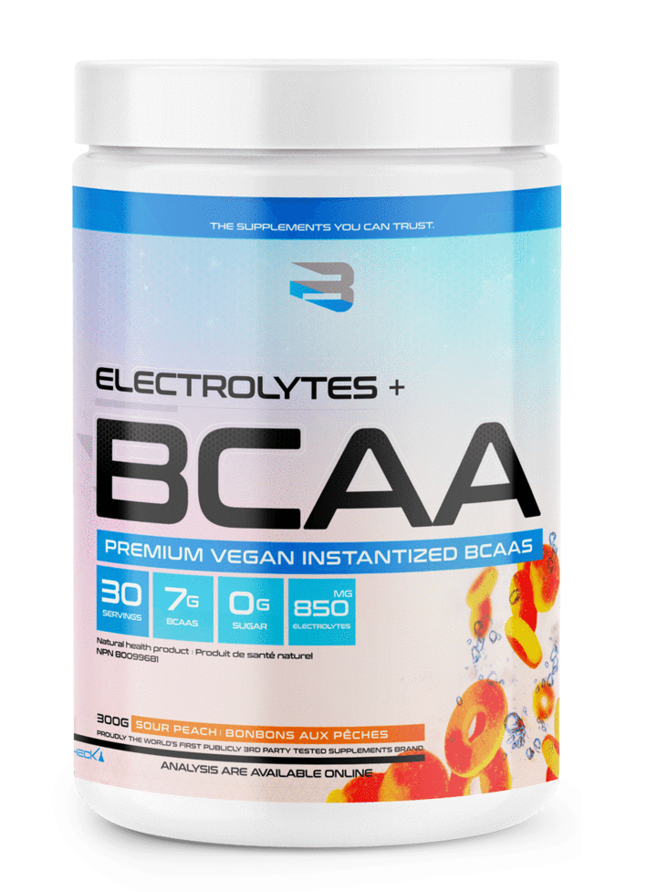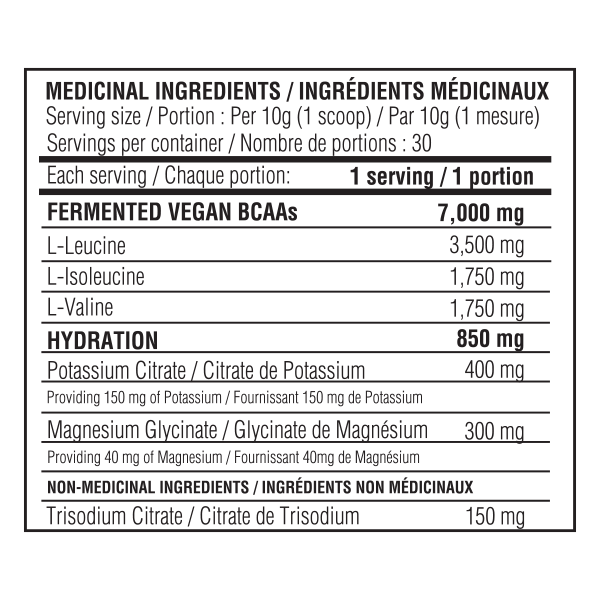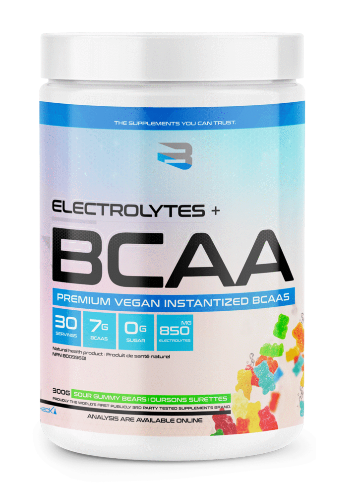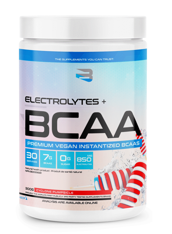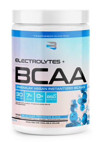 • Les électrolytes régulent la neurotransmission et la fonction musculaire, aident le corps à rester hydraté, affectent la pression artérielle et maintiennent l’équilibre de l’acidité artérielle. Les électrolytes peuvent même aider à réparer les dommages dans le corps. Les électrolytes se marient parfaitement avec les BCAA qui améliorent l’endurance, réduisent les douleurs musculaires et la fatigue, et aident à minimiser le catabolisme musculaire pendant les entraînements intenses.
