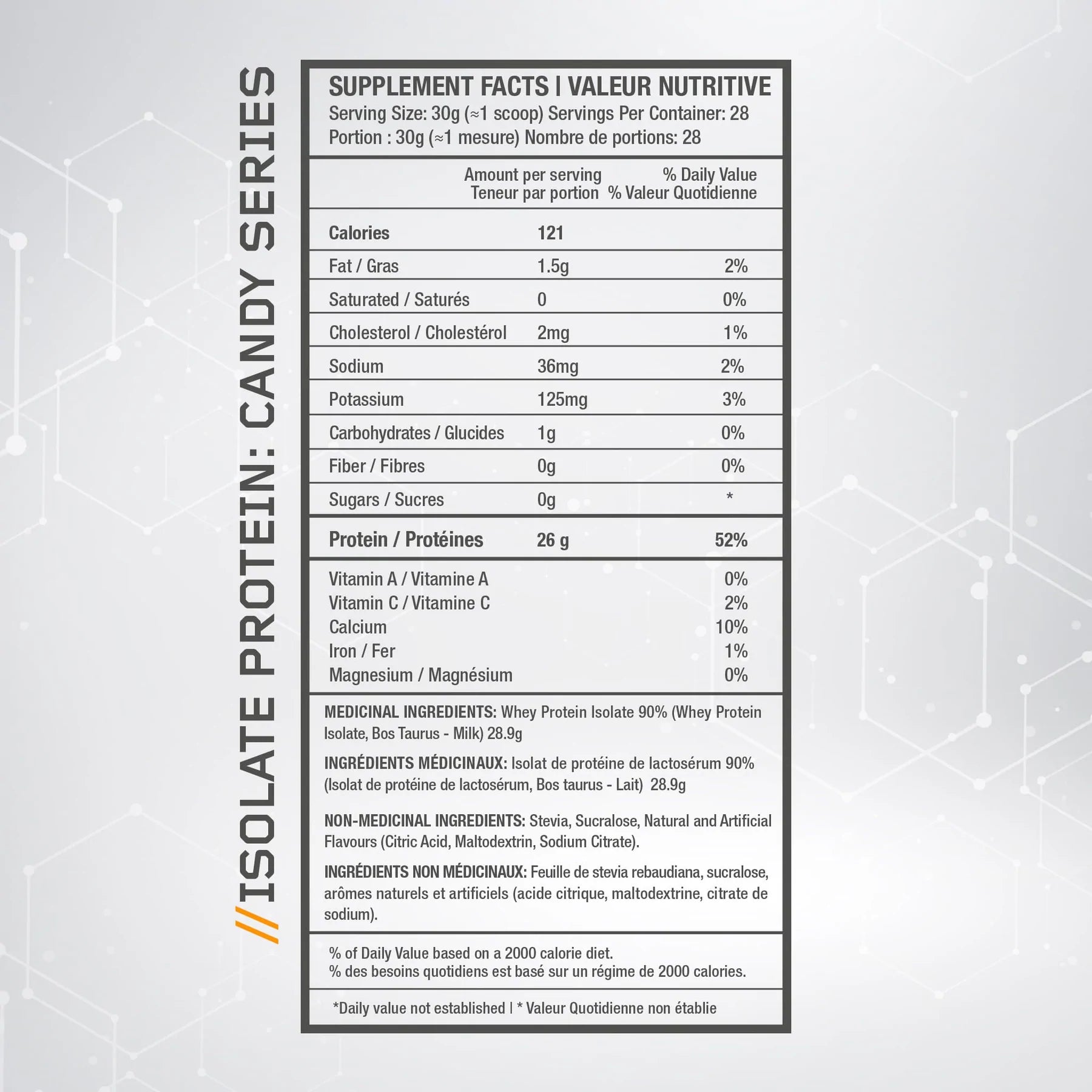 Provenant de l'isolat de protéines de lactosérum de la plus haute qualité (WPI90), puis microfiltré à flux croisés pour éliminer les protéines, les graisses et le lactose moins absorbables, la série Beyond Isolate Candy a été formulée pour combiner les saveurs de bonbons nostalgiques que vous connaissez et aimez, avec la source de protéine à l'absorption la plus pure et la plus rapide.