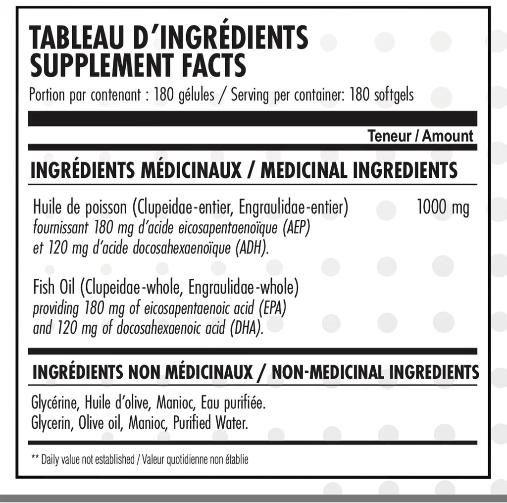 Contient les quantités requises d'AEP et d’ADH : Le supplément oméga-3 de Nova Pharma contient 180 mg d'AEP (acide eicosapentaénoïque) et 120 mg de ADH (acide docosahexaénoïque). Ces deux types d'acides gras oméga-3 sont les principaux dont notre corps a besoin.