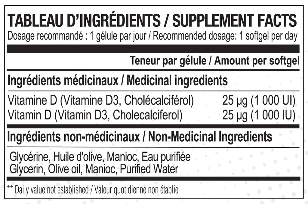 Contribue au maintien d’une bonne santé. Aide au développement et au maintien des os et des dents. Aide à l’absorption et à l’utilisation du calcium et du phosphore. La consommation de calcium, lorsqu’elle s’accompagne d’un apport suffisant en vitamine D, d’une alimentation saine et de la pratique régulière d’une activité physique, peut réduire le risque d’ostéoporose. Aide à prévenir une carence en vitamine D.