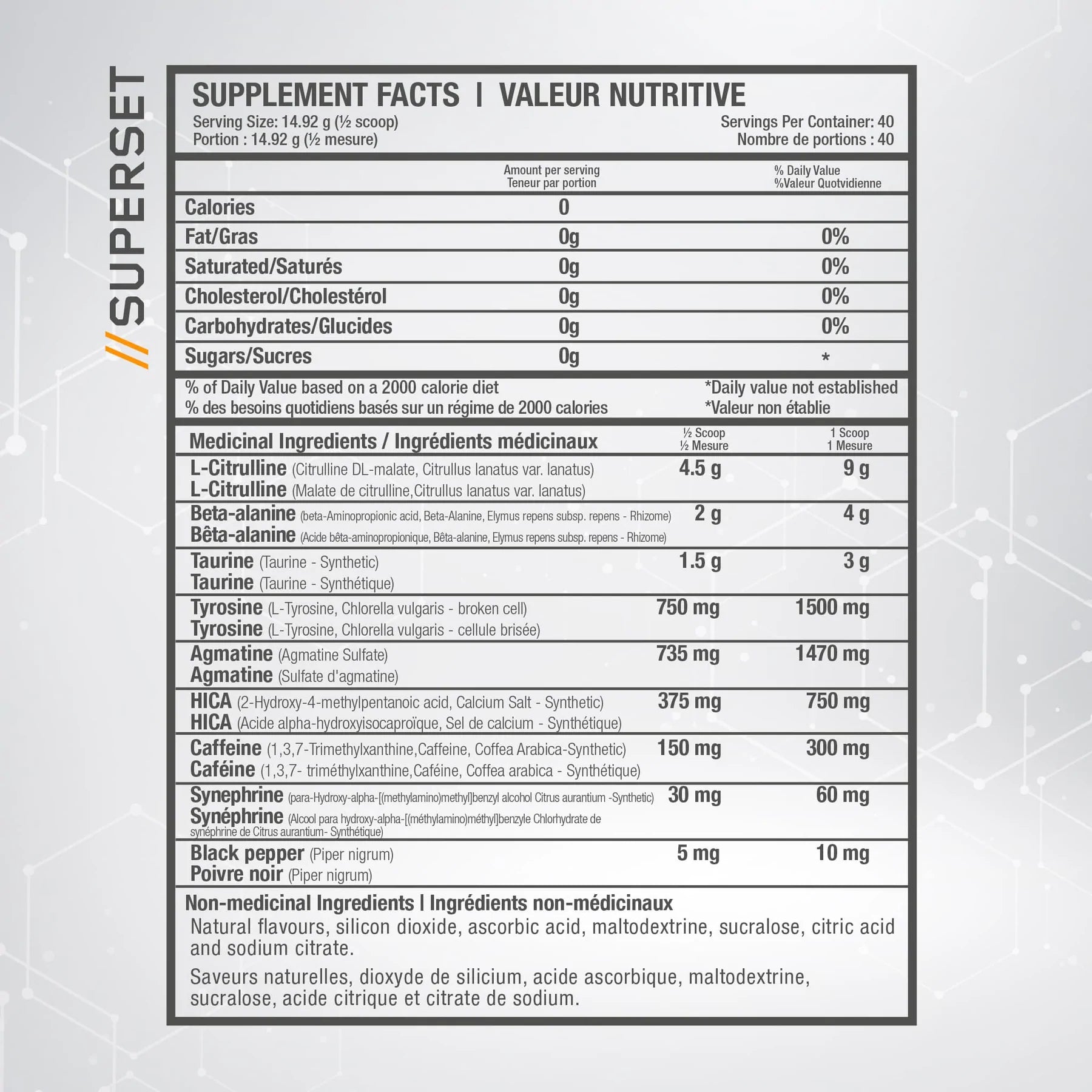 Ce n'est pas juste un autre pré-entraînement rempli de caféine. SuperSET a été scientifiquement formulé pour soutenir la force, augmenter la puissance et réduire la fatigue musculaire tout en fournissant une énergie intense et illimitée.