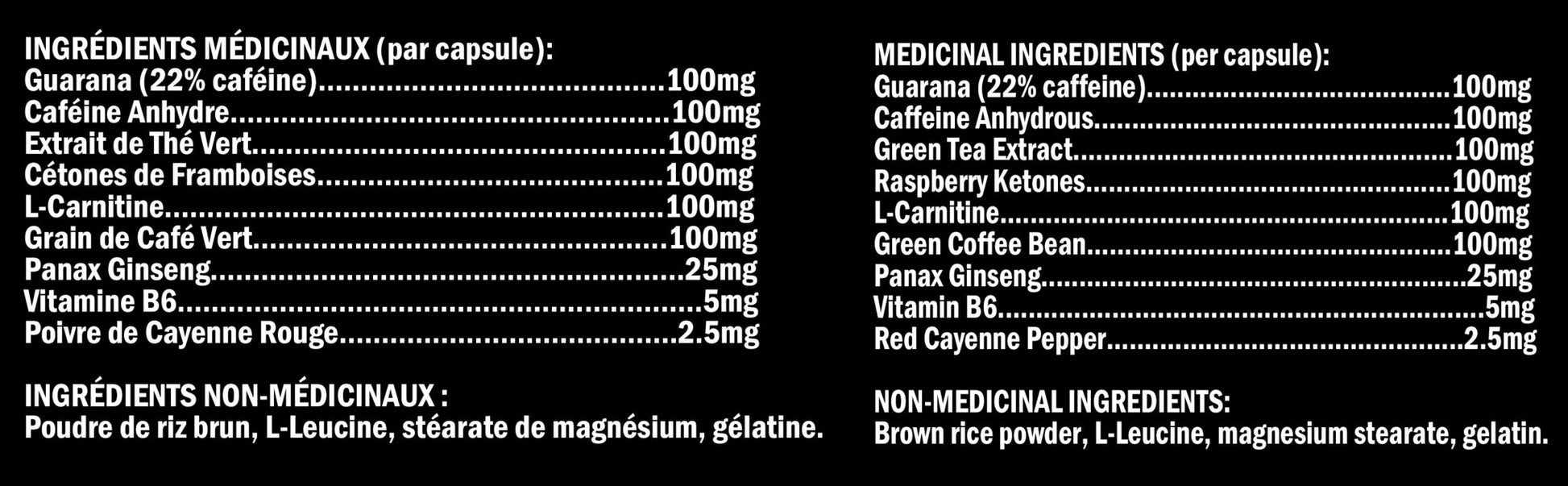 Conçu pour augmenter les niveaux d’énergie, chaque capsule de Thermo Cut est hautement concentrée en guarana, caféine, extrait de thé vert et grains de café vert.
